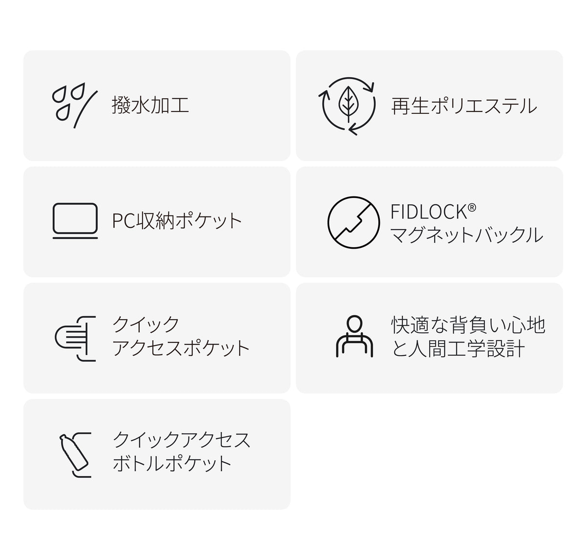 仕事中のスムーズな移動のために考え抜かれたデザインの、洗練されたバックパックをご覧ください。巧妙なアクセシビリティ機能と一日中快適であることへの揺るぎないこだわりにより、経験豊富なプロフェッショナルにとって理想的なパートナーとなります。